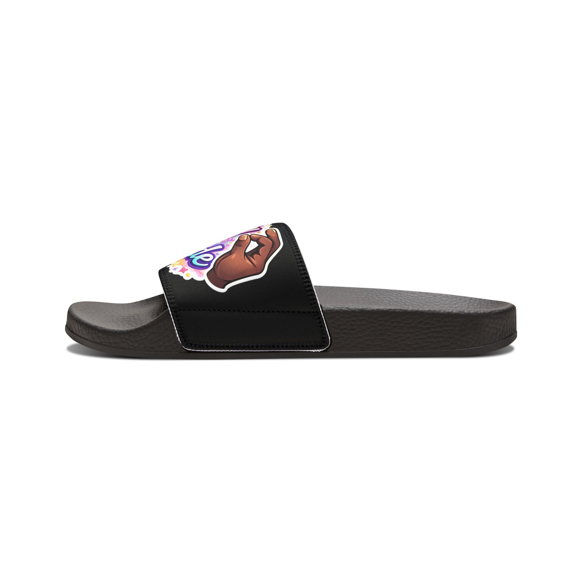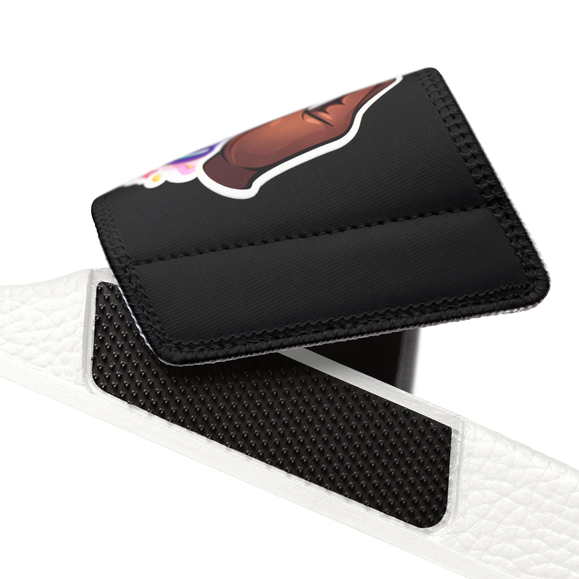 Lightweight slide sandals with removable printed straps that let you change your look in seconds. The cushioned PU foam outsole supports your foot’s natural curve while an embossed insole keeps your feet from slipping. Quick-drying polyester and neoprene straps swap on and off for easy customization — wear them plain or show off a bold printed strap. Clean black or white outsole options and subtle brand detailing on the sole finish the design. Comfortable enough for long days at the park, by the pool, or running errands around town.