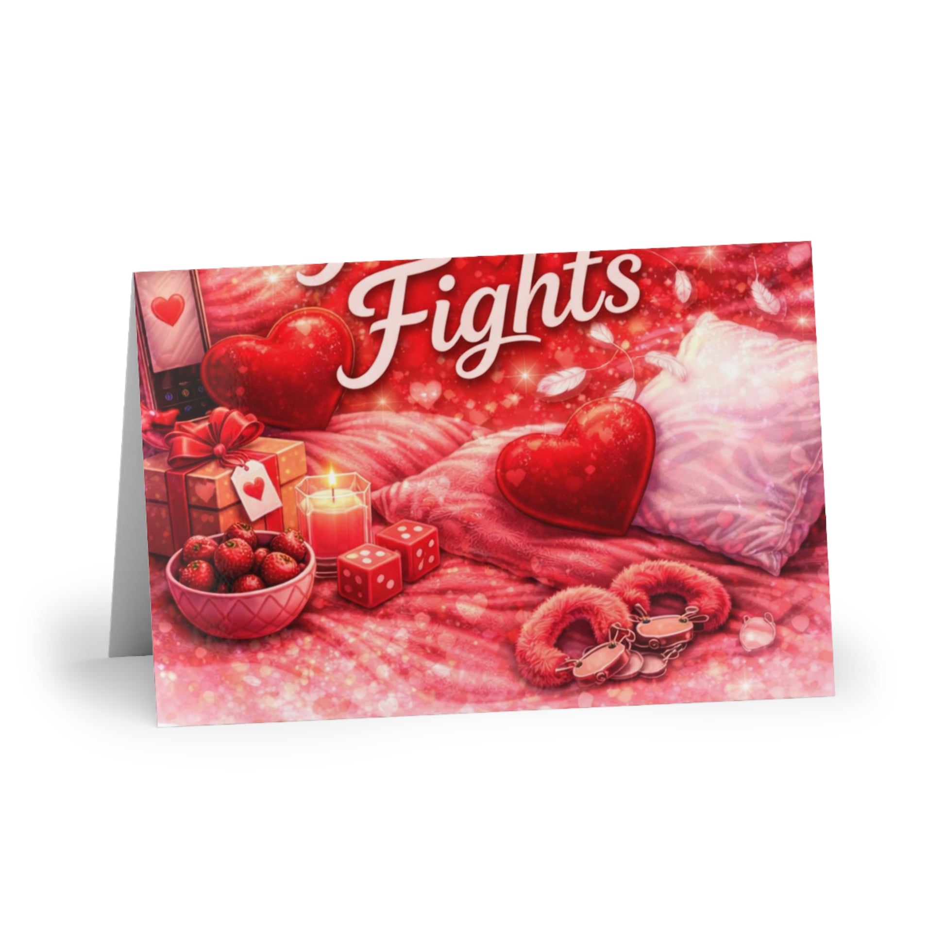 These vibrant greeting cards bring playful romance to every message. Each 4" x 6" folded card opens to an 8" x 6" canvas with semi-gloss detail on matte paper, so reds pop and tiny hearts hold their shine without glare. Use them portrait or landscape to write a flirty note, tuck into a gift, or send a warm hello across the miles. They arrive with matching envelopes and are available singly or in sets of ten—handy for keeping a few on the counter for spontaneous love notes or saving a stack for seasonal card-sending.