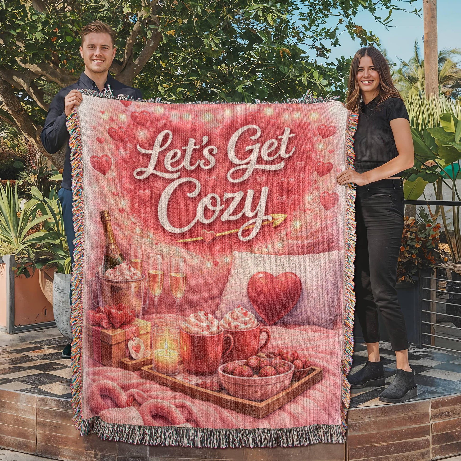 Let’s Get Cozy Woven Blanket – Romantic Cotton Throw for Couples