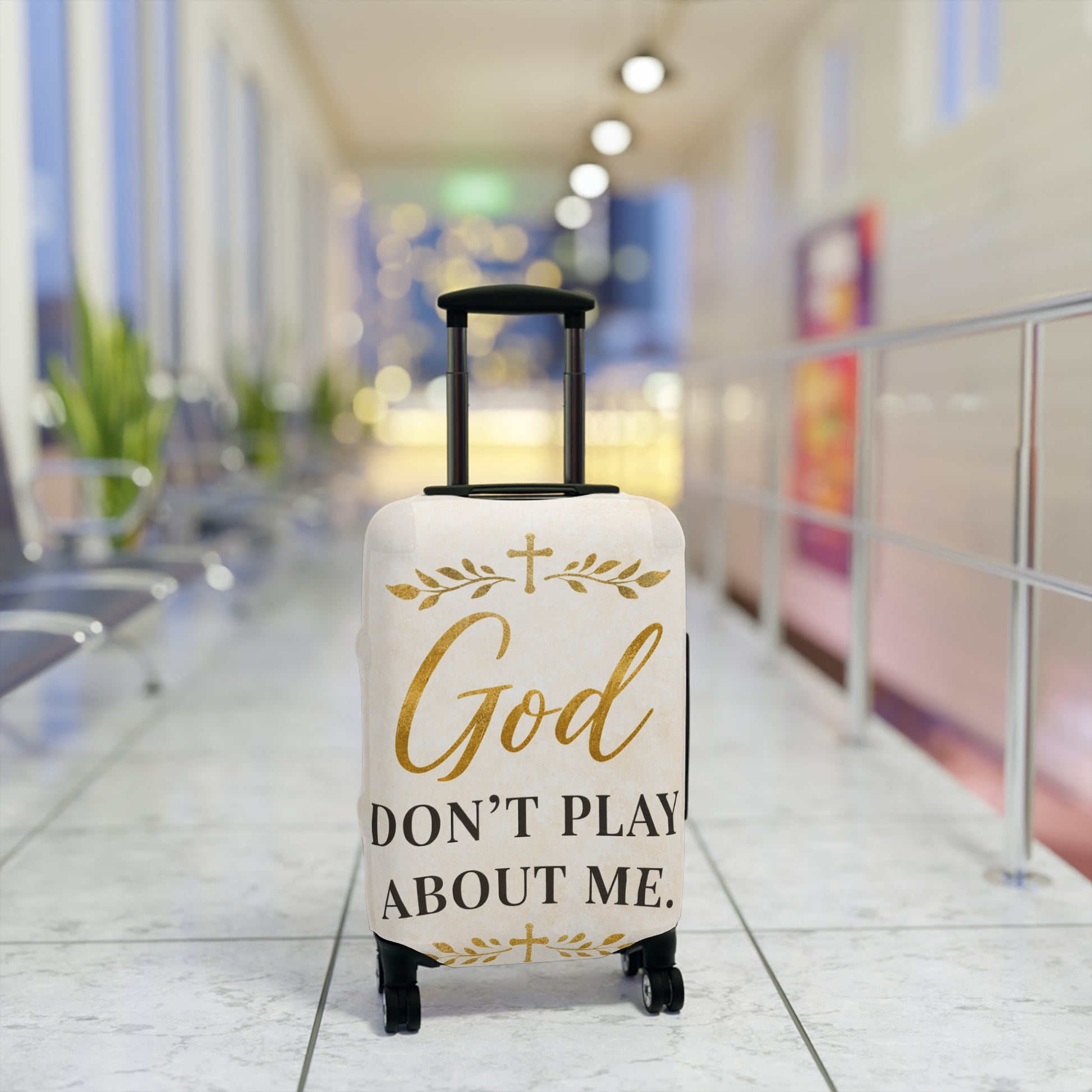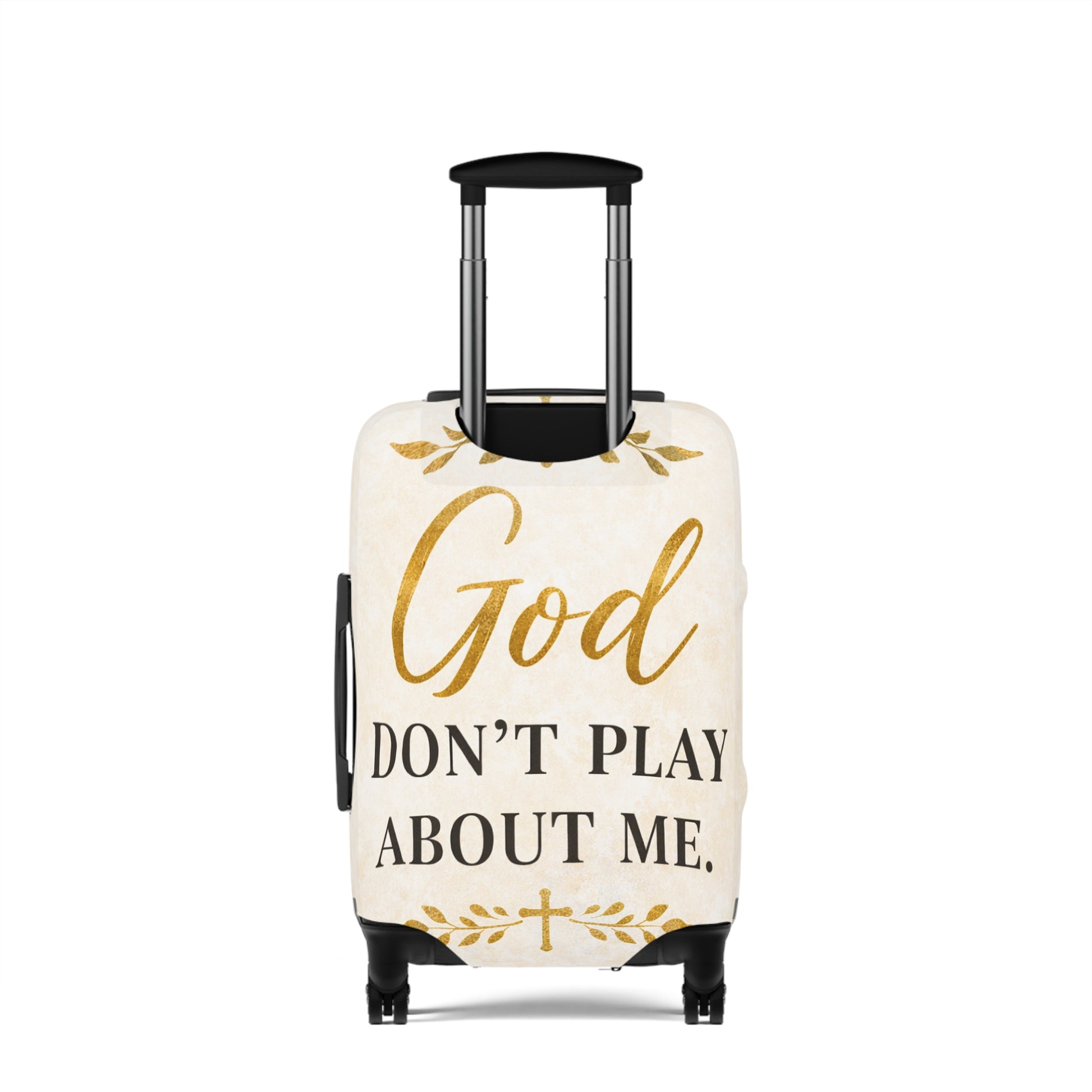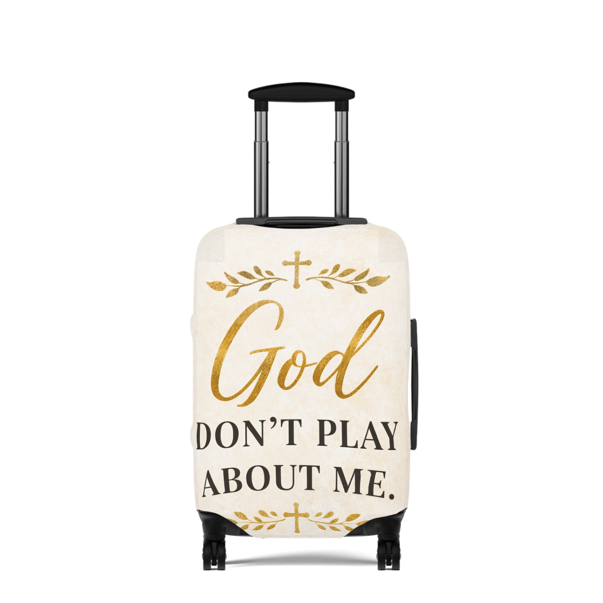 God Don't Play About Me Luggage Cover — Christian Faith Travel Protector