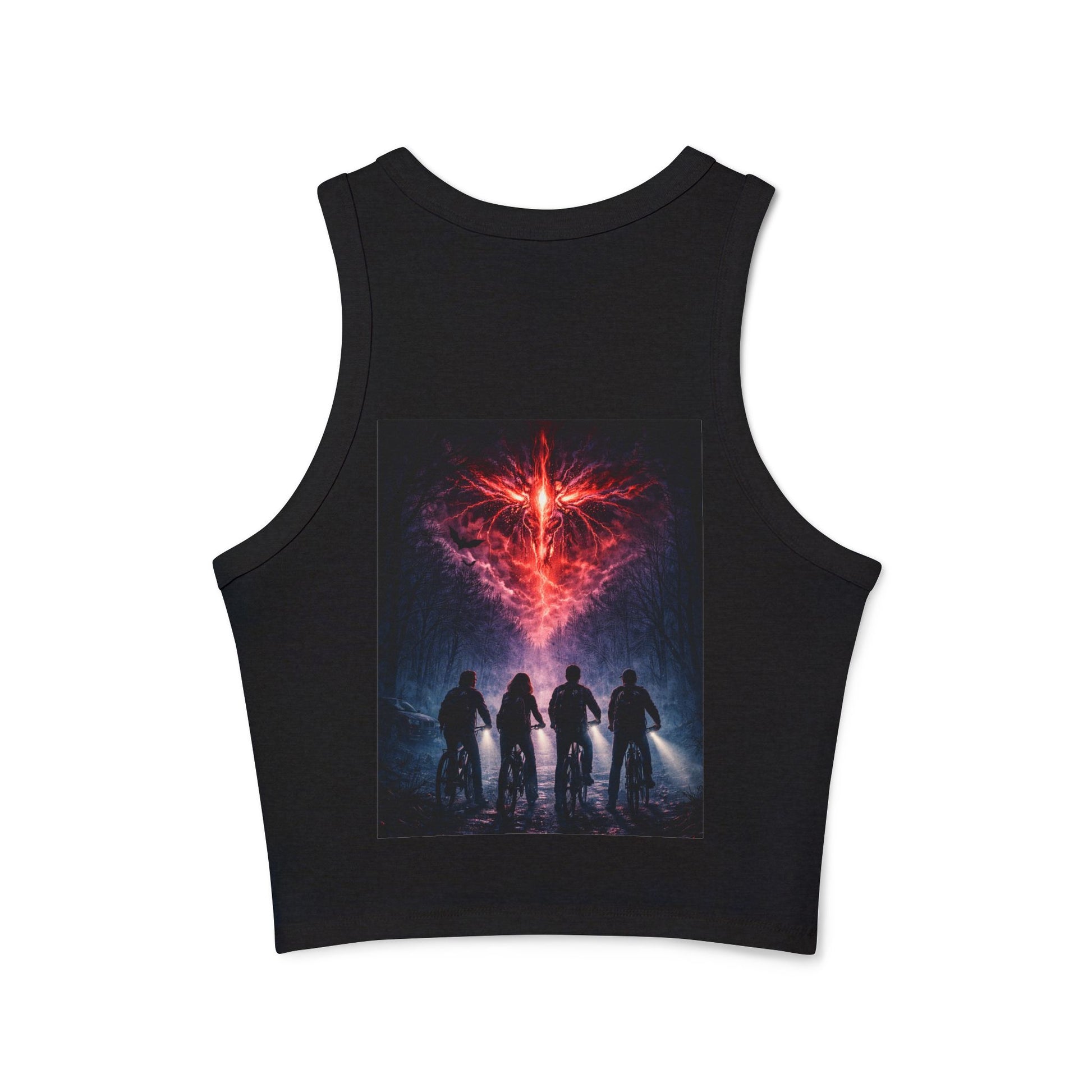 Channel bold attitude and retro mystery with this Racer Tank Top inspired by Stranger Things. Designed for fans who love edgy style with a nostalgic twist, this top brings subtle sci-fi vibes into an everyday, fashion-forward silhouette.