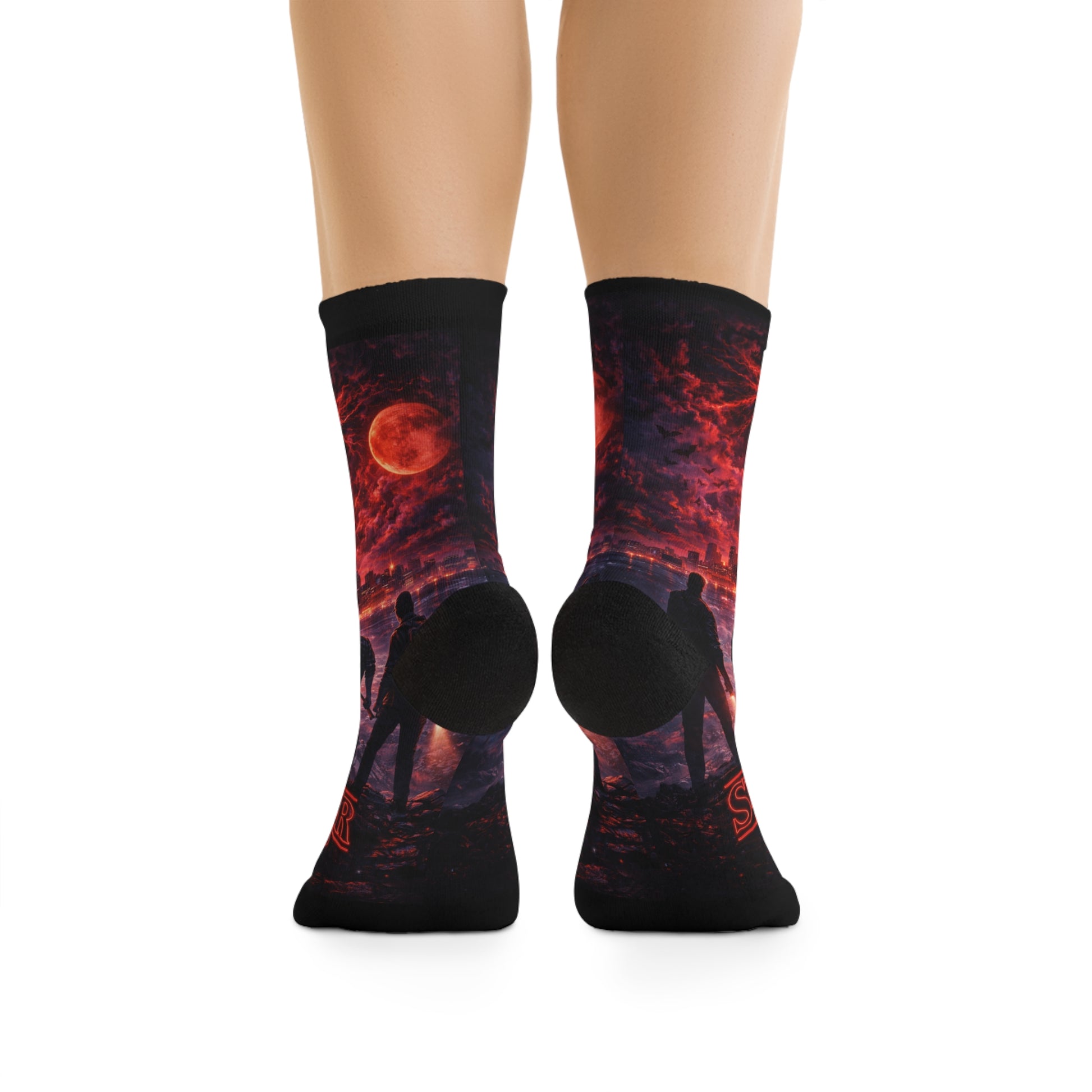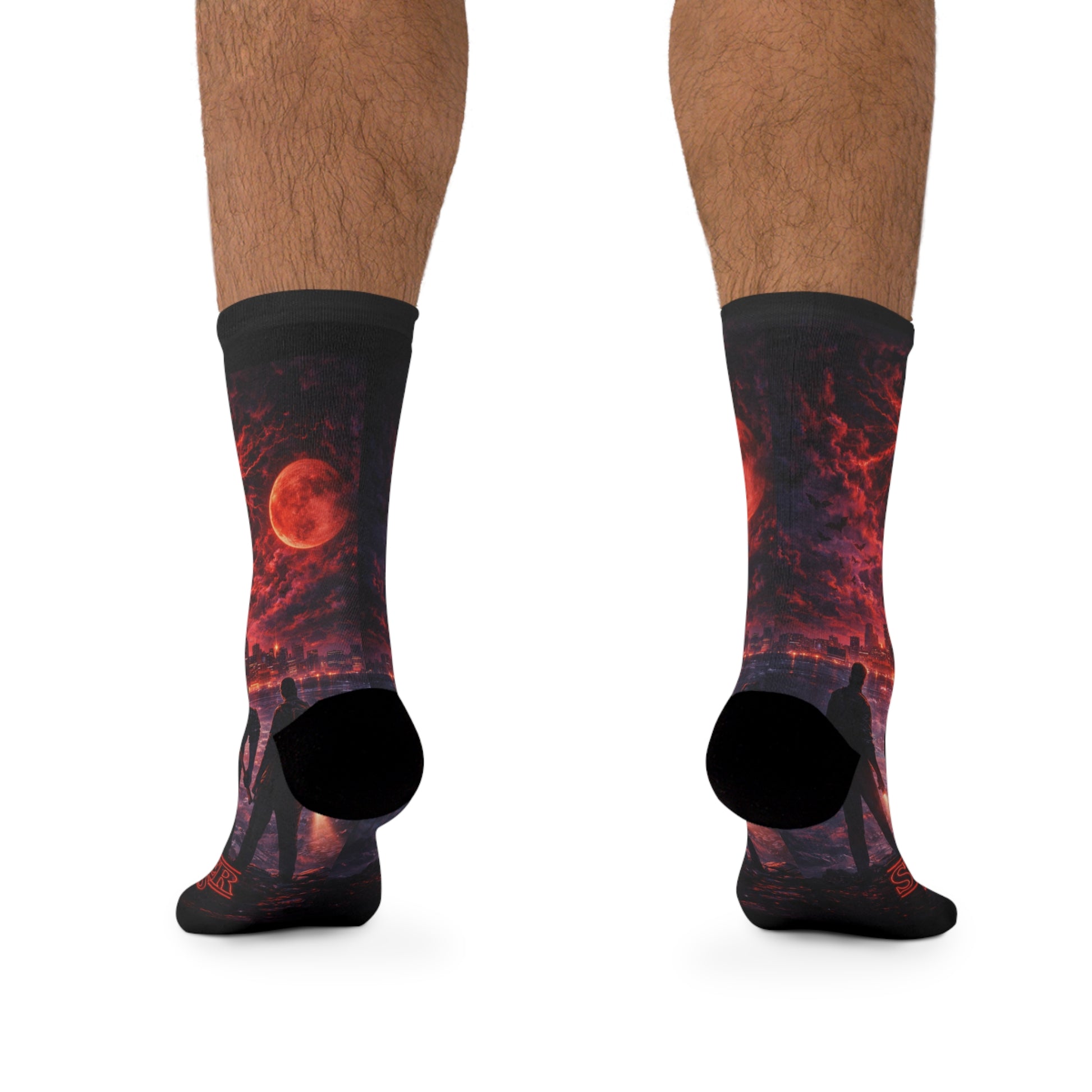 Stranger Things Inspired Recycled Poly Crew Socks — Retro Horror Sci‑Fi Design
