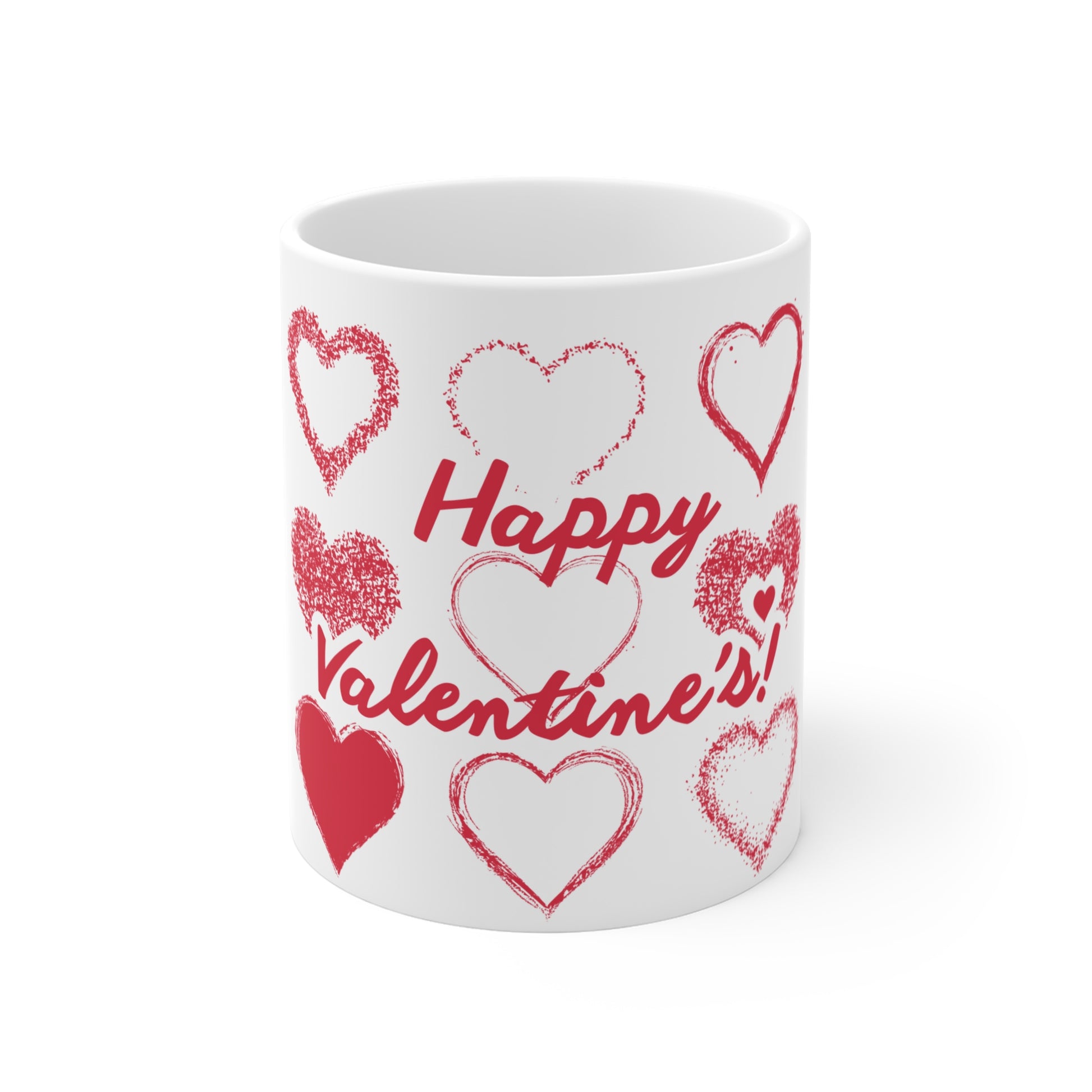 Valentine's Hearts 11oz Mug — "Happy Valentine's!" Romantic Coffee Cup
